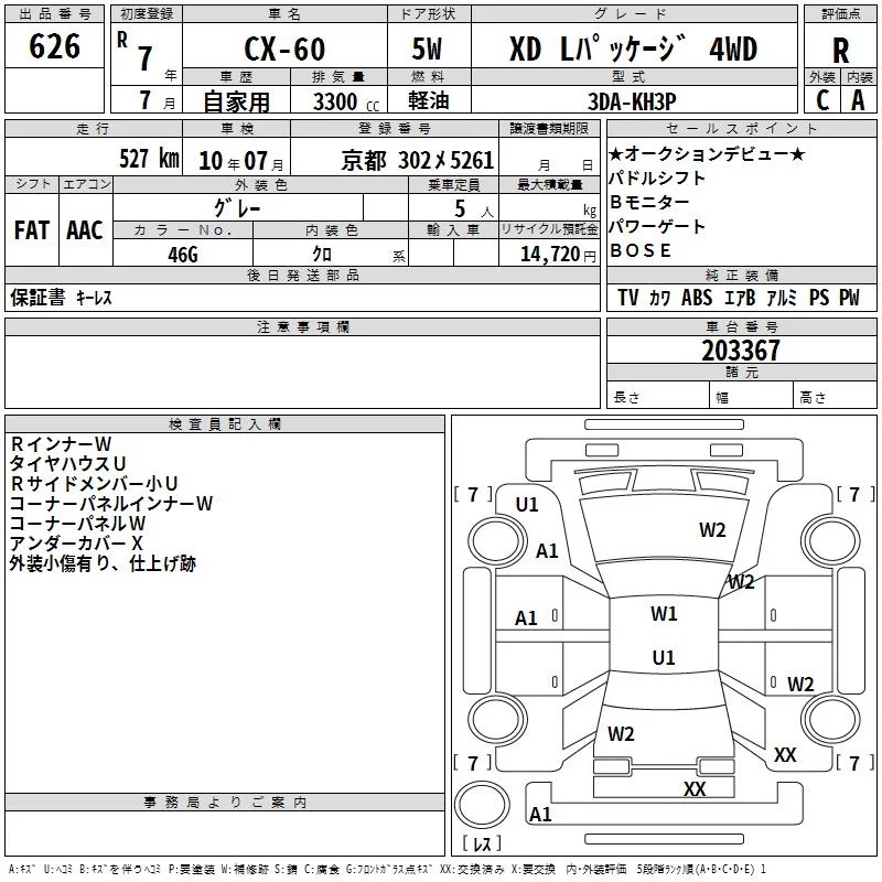 Mazda CX-60 с аукциона Японии TAA Kinki лот № 626