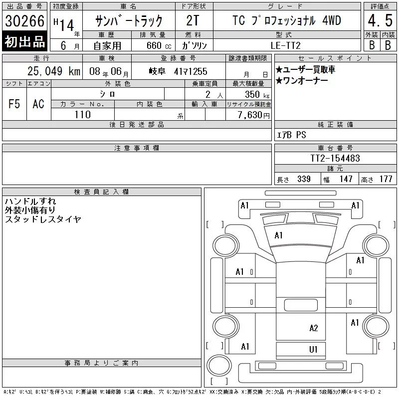 Subaru SAMBAR с аукциона Японии CAA Gifu лот № 30266