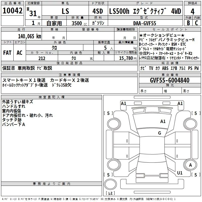 Lexus LS с аукциона Японии TAA Kinki лот № 10042