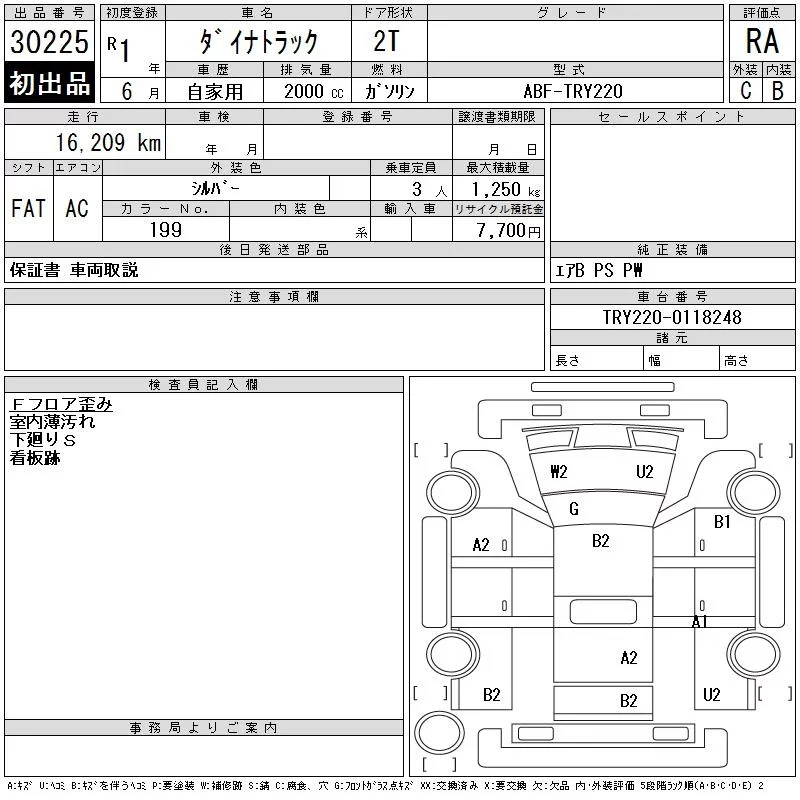 Toyota DYNA с аукциона Японии CAA Gifu лот № 30225