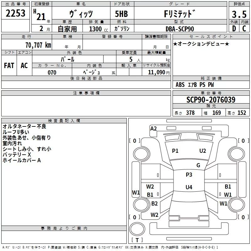 Toyota VITZ с аукциона Японии TAA Kinki лот № 2253