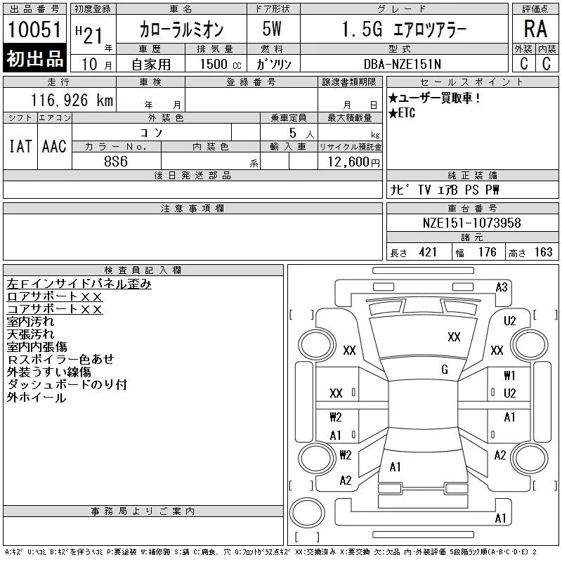 Toyota COROLLA RUMION с аукциона Японии CAA Gifu лот № 10051