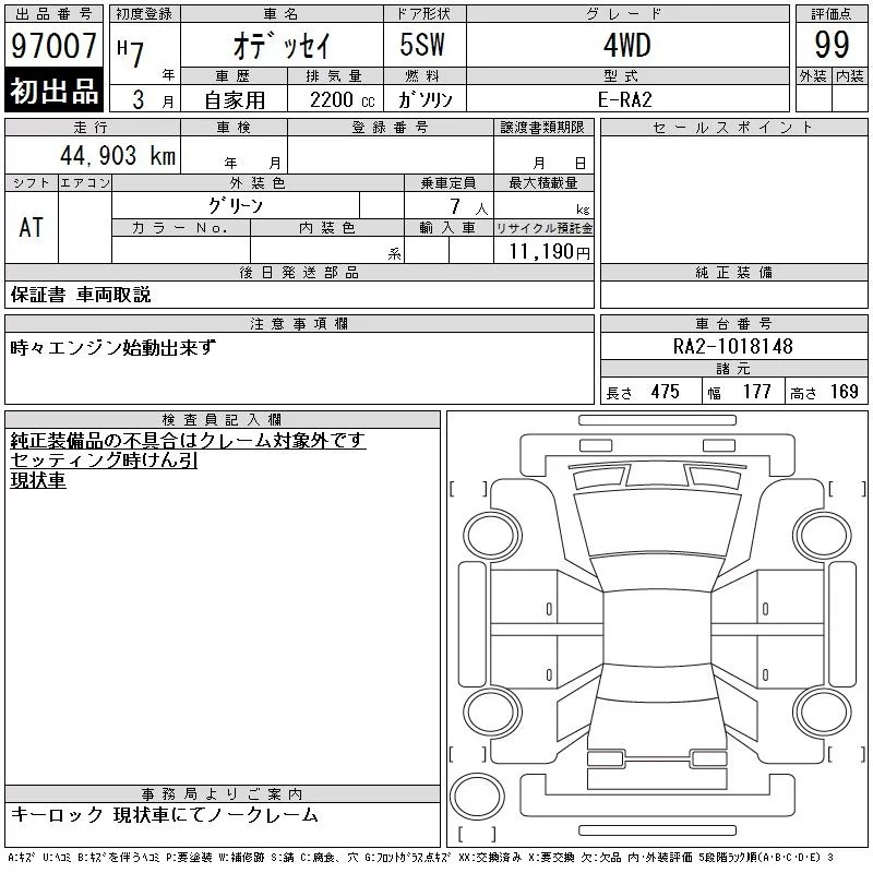 Honda ODYSSEY с аукциона Японии CAA Gifu лот № 97007