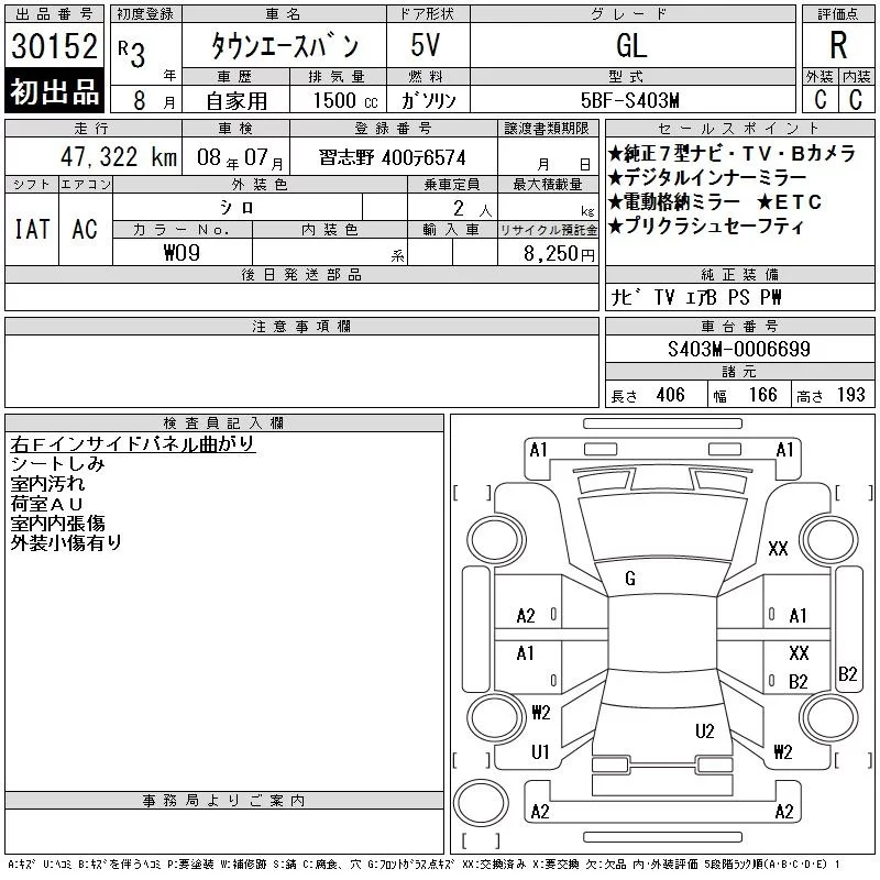 Toyota TOWN ACE VAN с аукциона Японии CAA Tokyo лот № 30152