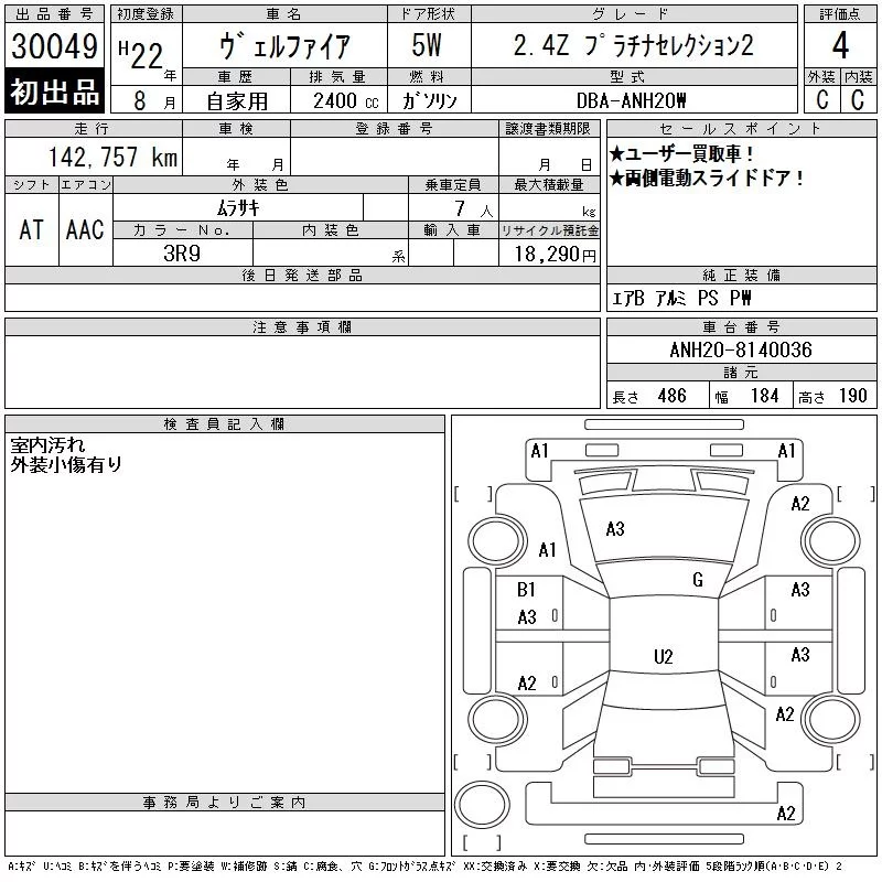 Toyota VELLFIRE с аукциона Японии CAA Tokyo лот № 30049