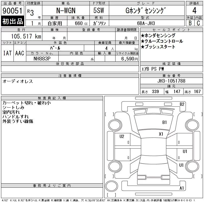 Honda N WGN с аукциона Японии CAA Tokyo лот № 90051