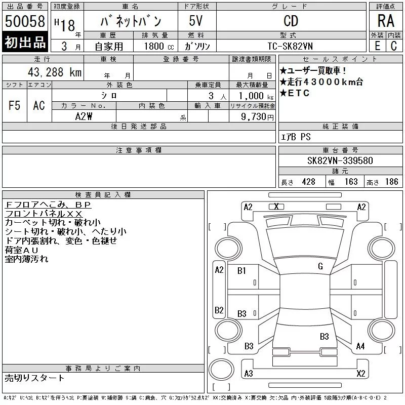Nissan VANETTE VAN с аукциона Японии CAA Tokyo лот № 50058