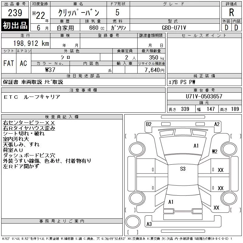 Nissan CLIPPER VAN с аукциона Японии CAA Tokyo лот № 239