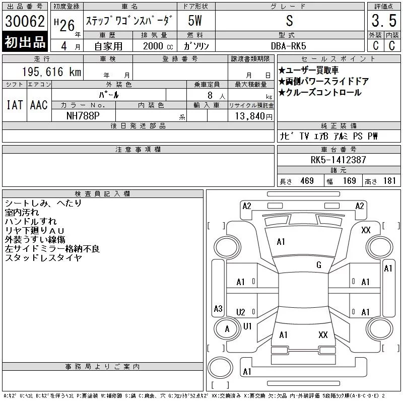 Honda STEP WAGON с аукциона Японии CAA Tokyo лот № 30062