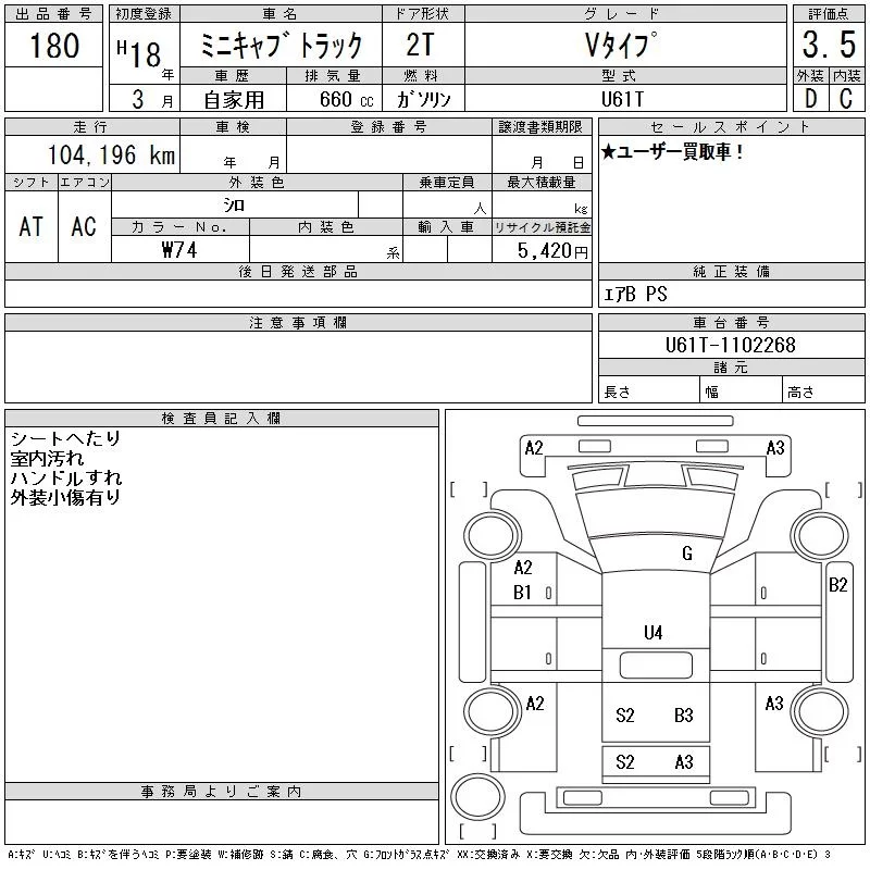 Mitsubishi MINICAB TRUCK с аукциона Японии CAA Tokyo лот № 180