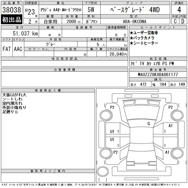 Audi A4 с аукциона Японии CAA Tokyo лот № 38038