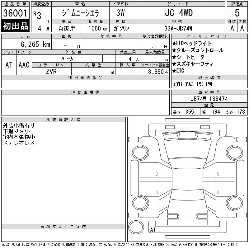 Suzuki JIMNY SIERRA с аукциона Японии CAA Tokyo лот № 36001