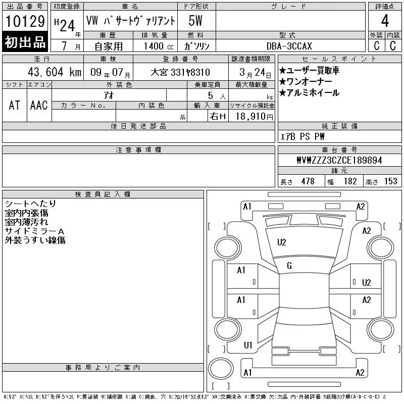 Volkswagen PASSAT VARIANT с аукциона Японии CAA Tokyo лот № 10129