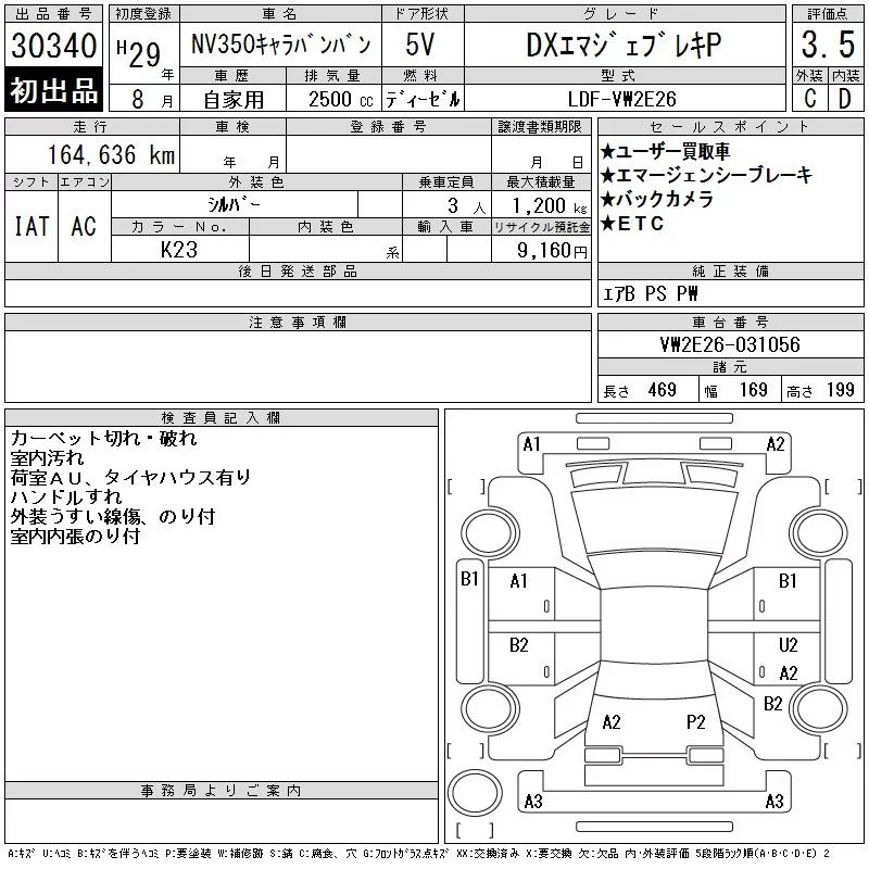 Nissan CARAVAN VAN с аукциона Японии CAA Tokyo лот № 30340