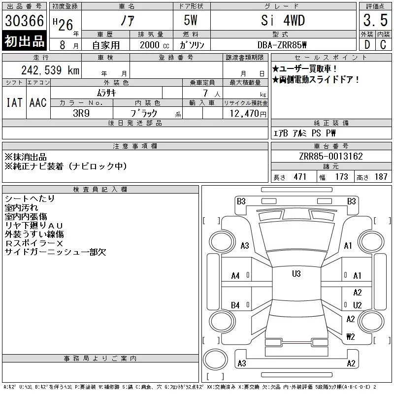 Toyota NOAH с аукциона Японии CAA Tokyo лот № 30366