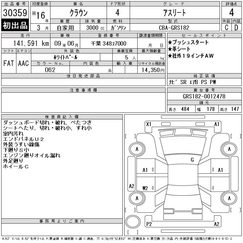 Toyota CROWN с аукциона Японии CAA Tokyo лот № 30359