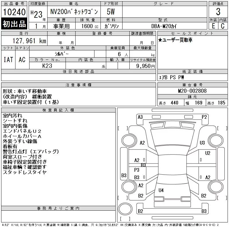 Nissan NV200 с аукциона Японии CAA Tokyo лот № 10240