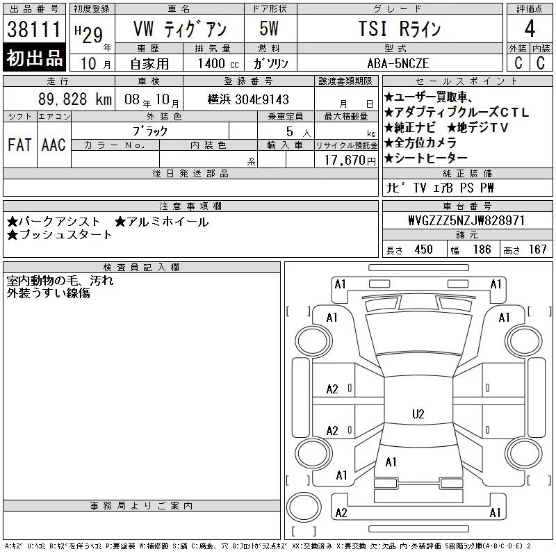 Volkswagen TIGUAN с аукциона Японии CAA Tokyo лот № 38111