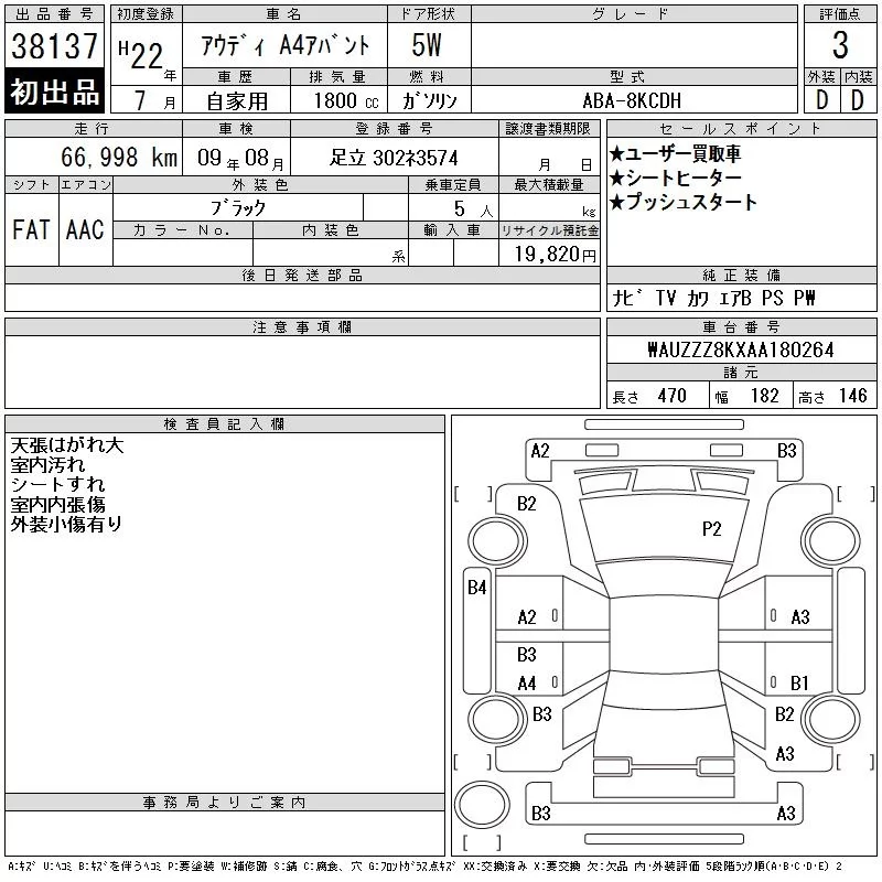 Audi A4 с аукциона Японии CAA Tokyo лот № 38137
