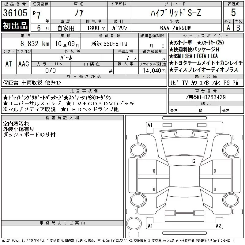 Toyota NOAH с аукциона Японии CAA Tokyo лот № 36105