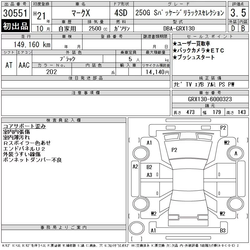 Toyota MARK X с аукциона Японии CAA Tokyo лот № 30551