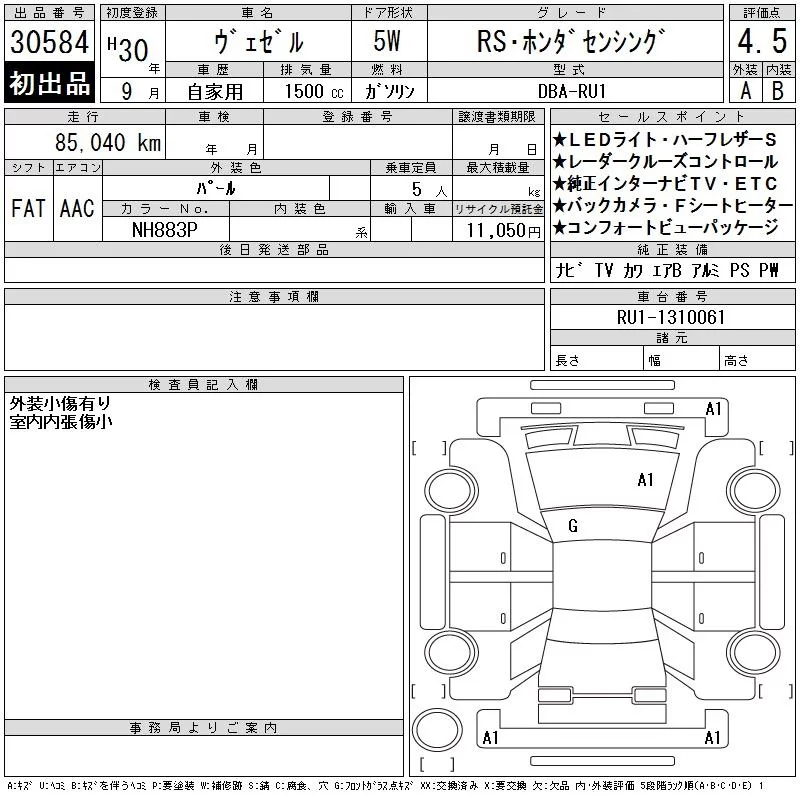 Honda VEZEL с аукциона Японии CAA Tokyo лот № 30584
