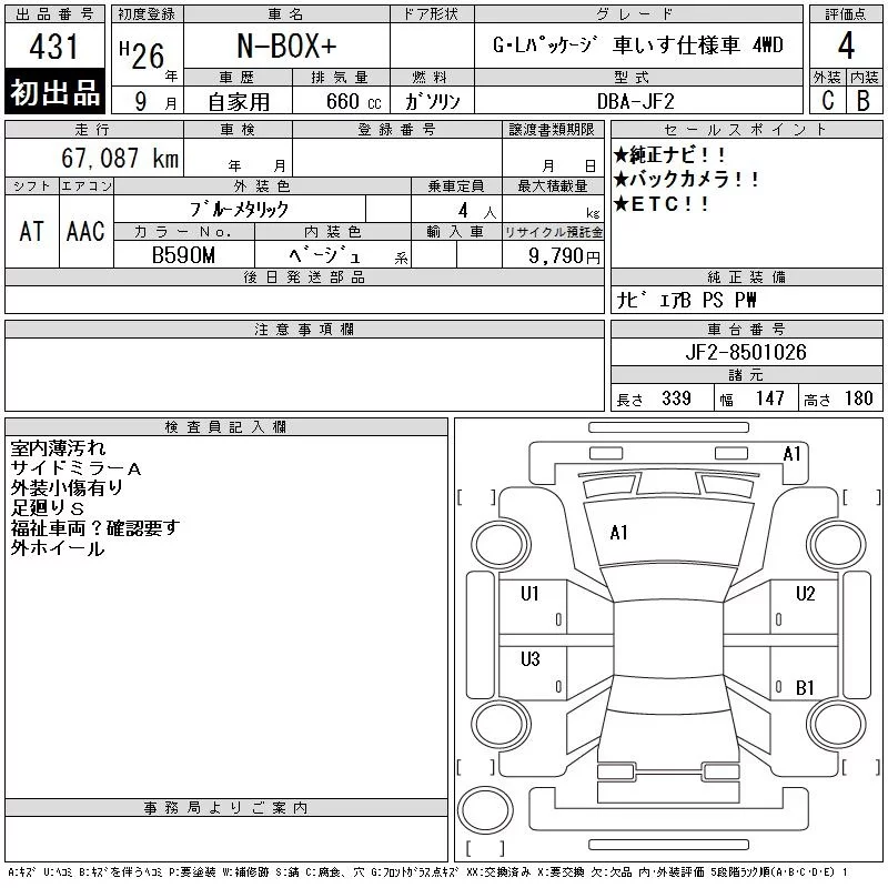 Honda N BOX PLUS с аукциона Японии CAA Tokyo лот № 431