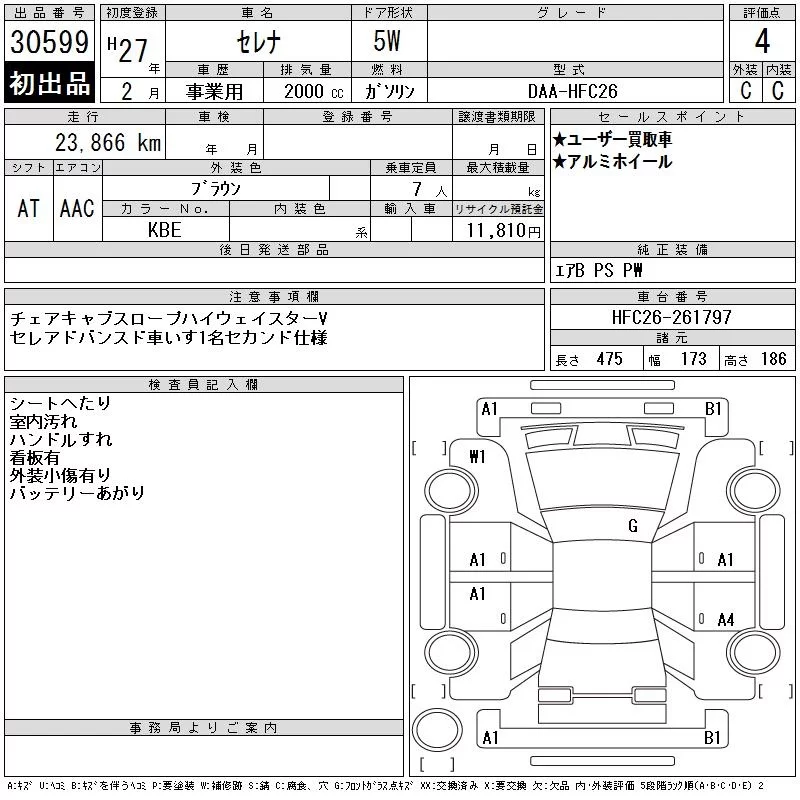 Nissan SERENA с аукциона Японии CAA Tokyo лот № 30599