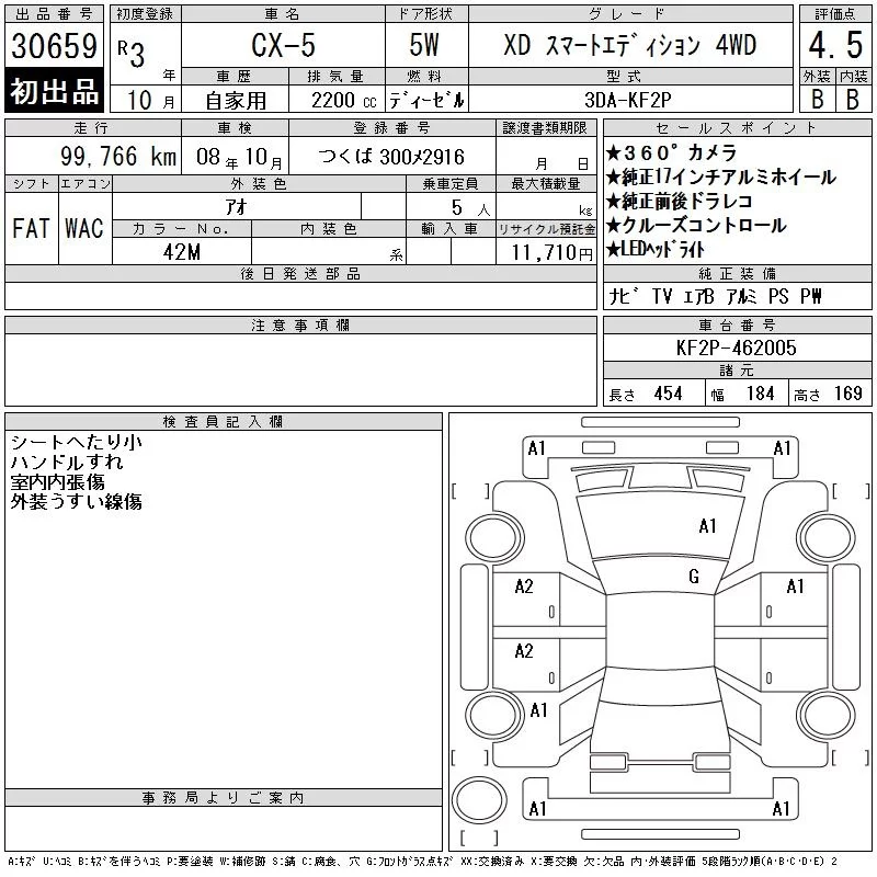 Mazda CX-5 с аукциона Японии CAA Tokyo лот № 30659