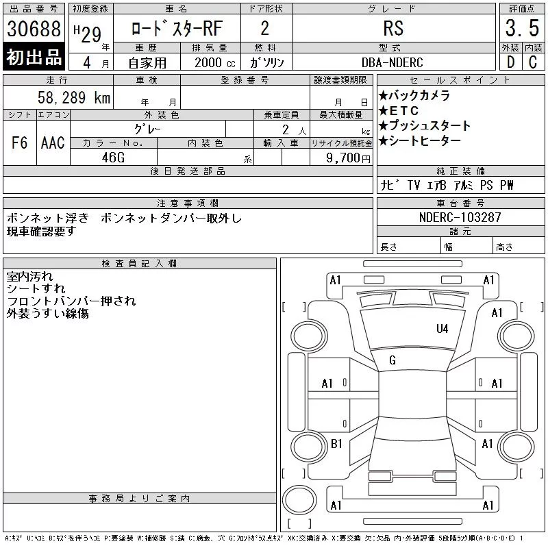 Mazda ROADSTER с аукциона Японии CAA Tokyo лот № 30688