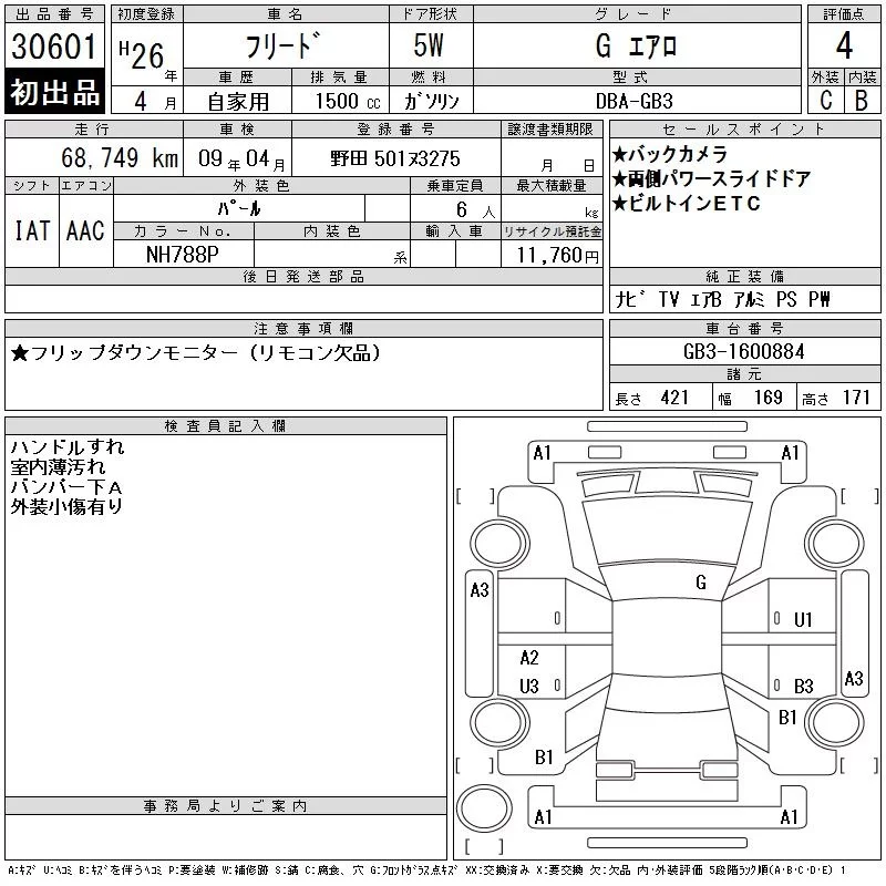 Honda FREED с аукциона Японии CAA Tokyo лот № 30601