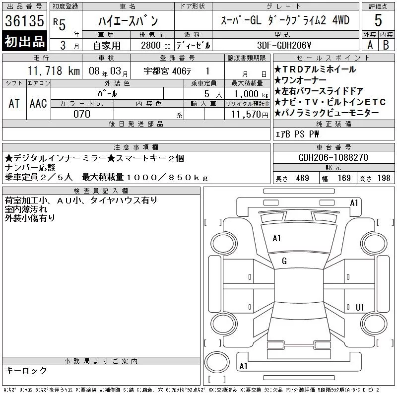 Toyota HIACE VAN с аукциона Японии CAA Tokyo лот № 36135