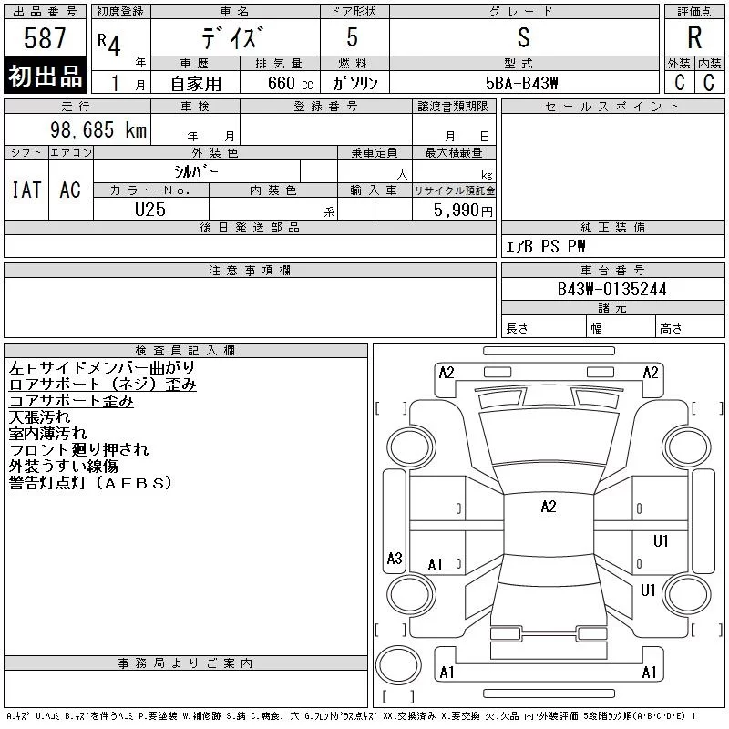 Nissan DAYZ с аукциона Японии CAA Tokyo лот № 587