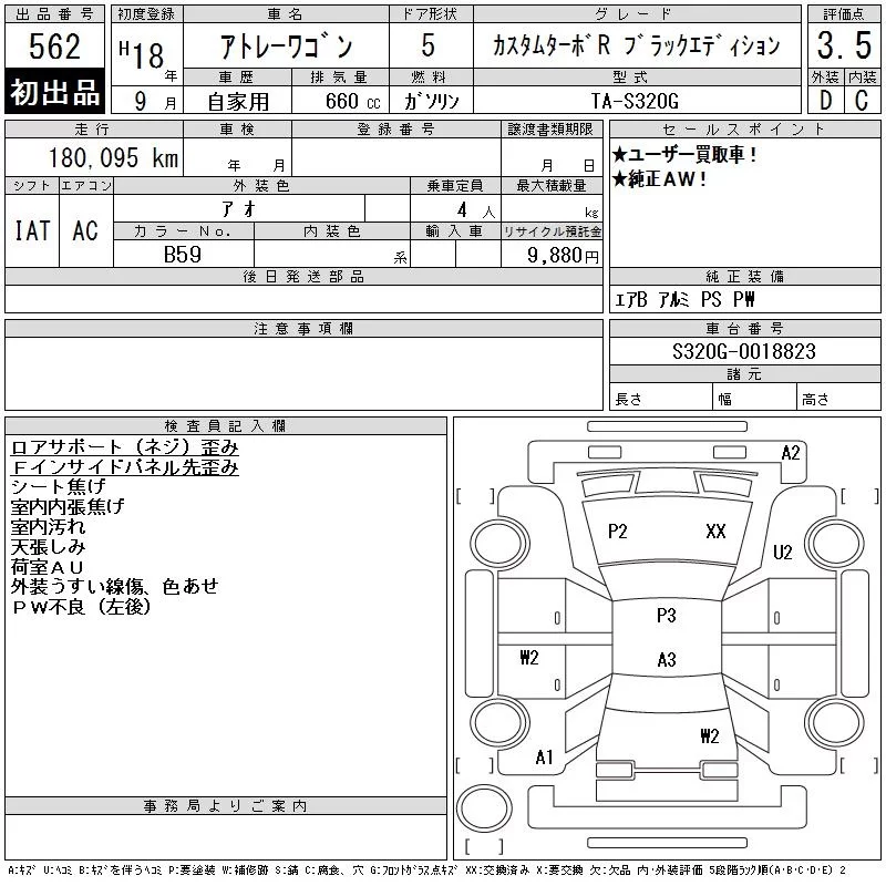 Daihatsu Atrai Wagon с аукциона Японии CAA Tokyo лот № 562