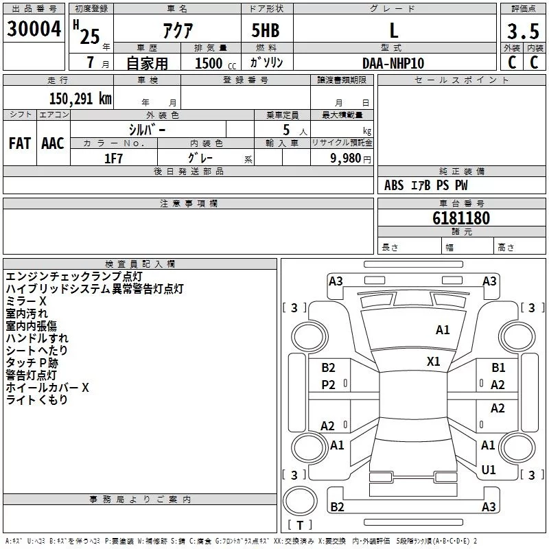 Toyota AQUA с аукциона Японии TAA Hiroshima лот № 30004