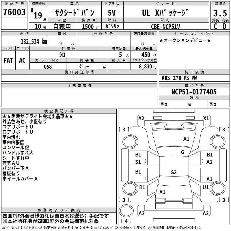 Toyota SUCCEED с аукциона Японии TAA Shikoku лот № 76003
