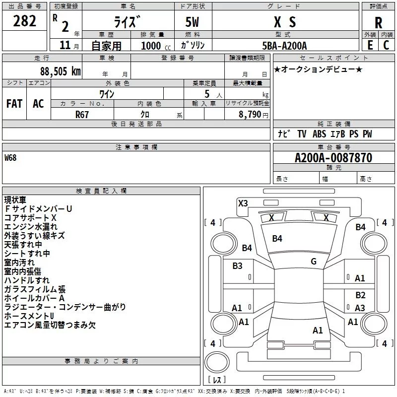 Toyota RAIZE с аукциона Японии TAA Hiroshima лот № 282