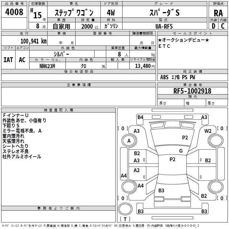 Honda STEP WAGON с аукциона Японии TAA Shikoku лот № 4008