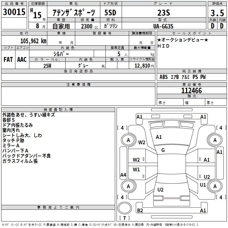 Mazda ATENZA SPORT с аукциона Японии TAA Hiroshima лот № 30015