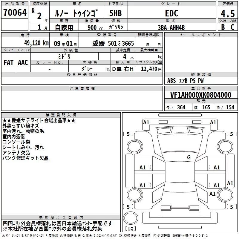 Renault TWINGO с аукциона Японии TAA Shikoku лот № 70064