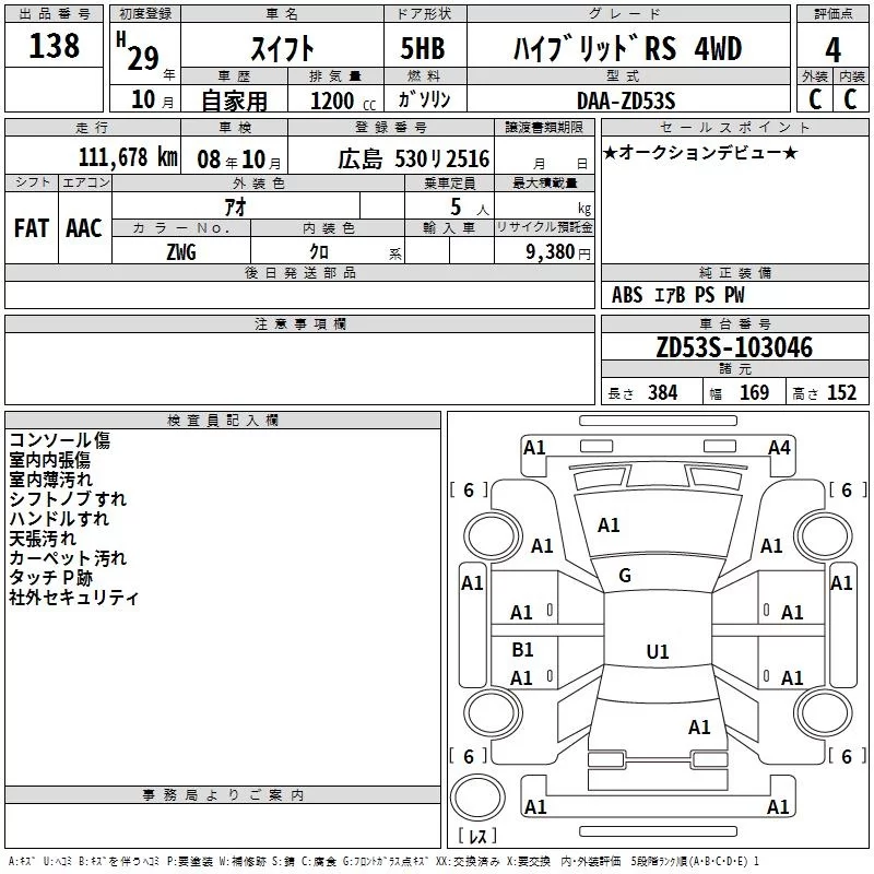 Suzuki SWIFT с аукциона Японии TAA Hiroshima лот № 138