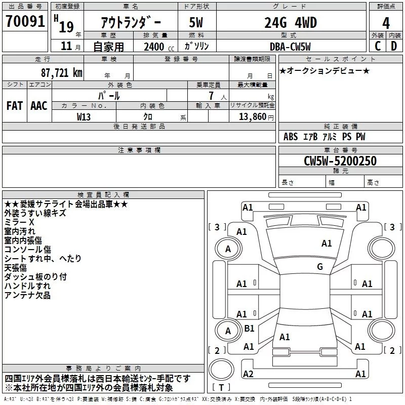 Mitsubishi OUTLANDER с аукциона Японии TAA Shikoku лот № 70091