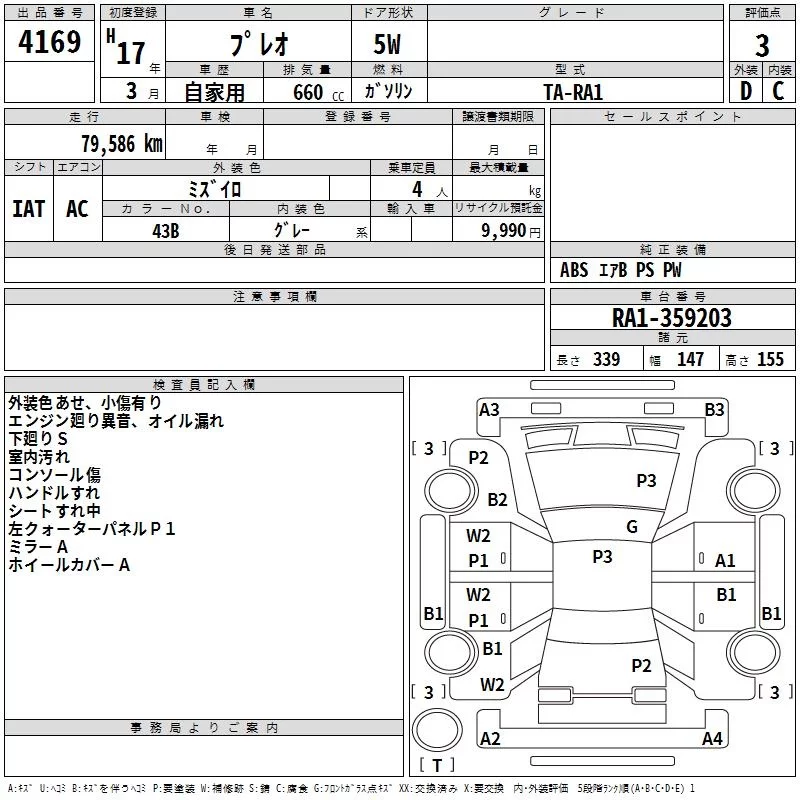 Subaru PLEO с аукциона Японии TAA Shikoku лот № 4169