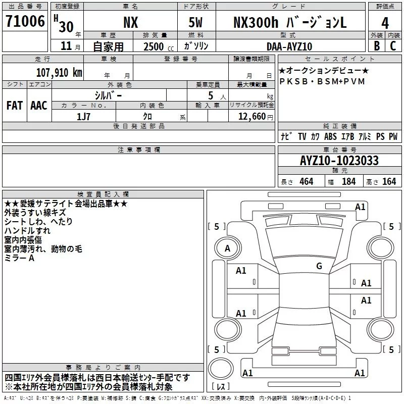 Lexus NX с аукциона Японии TAA Shikoku лот № 71006