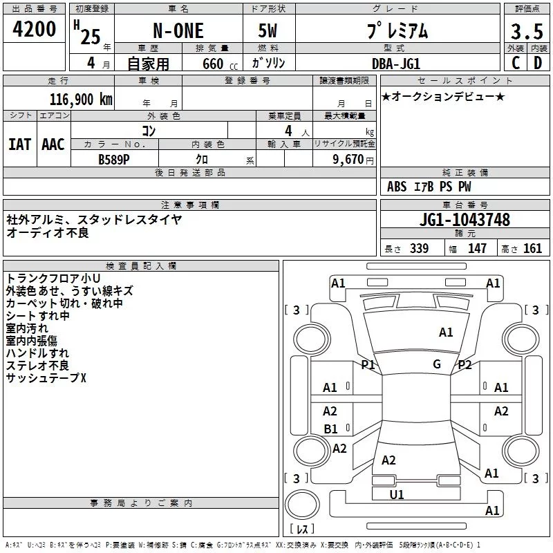 Honda N ONE с аукциона Японии TAA Hiroshima лот № 4200