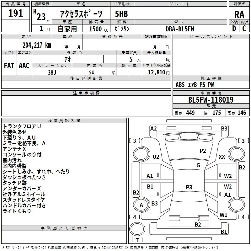 Mazda AXELA с аукциона Японии TAA Hiroshima лот № 191