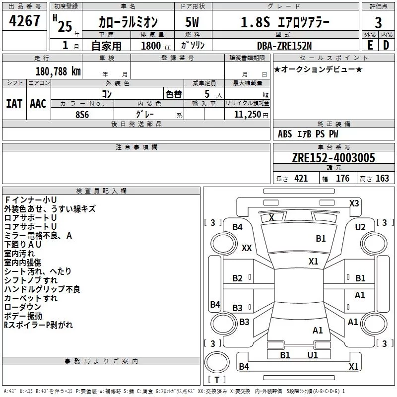 Toyota COROLLA RUMION с аукциона Японии TAA Hiroshima лот № 4267