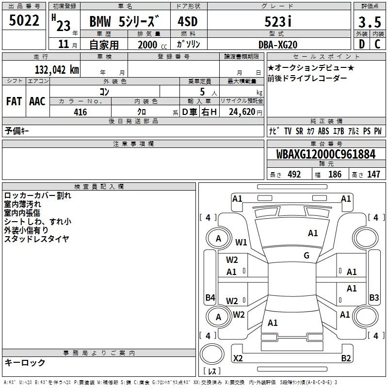 BMW 5-Series с аукциона Японии TAA Hiroshima лот № 5022