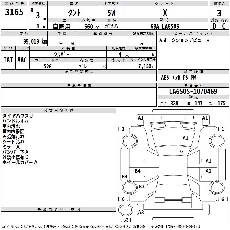 Daihatsu TANTO с аукциона Японии TAA Hiroshima лот № 3165