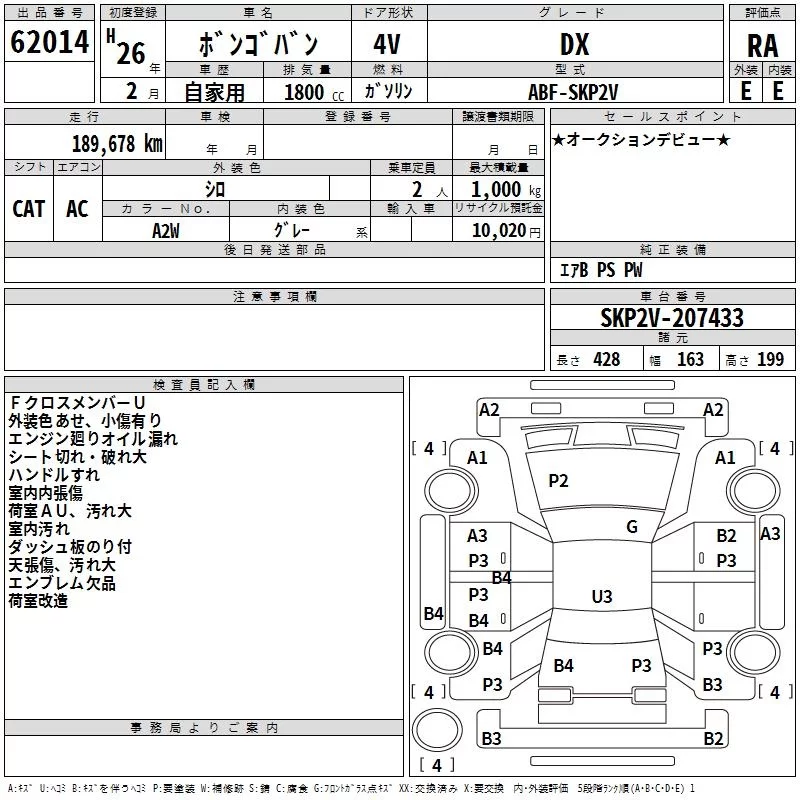 Mazda BONGO VAN с аукциона Японии TAA Kyushu лот № 62014